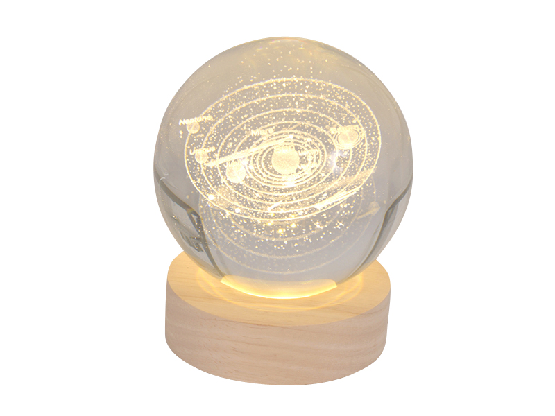 Hochwertige Klarglas Kugel mit aufwendig eingelaserter Träumer. Inklusive edlem LED-Untersetzer aus feinem Holz mit USB-Kabel.